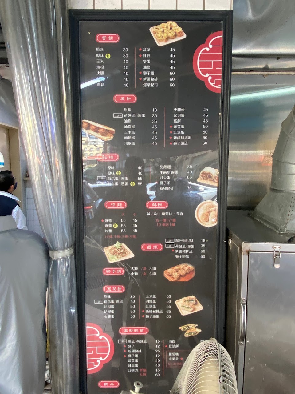 部份備料區在巷子馬路邊,點餐完有店員會叫號送餐,內用區都是自助式,環境有點髒,新疆豬排燒餅、甜鹹酥餅類表面太焦、餅皮香氣不夠,豇豆蛋餅與味增醬料味道蠻搭,獅子頭飯糰油條有油耗味,飯屬偏軟口感,除了味增醬比較少見,其他口味&豆、米漿都一般般。