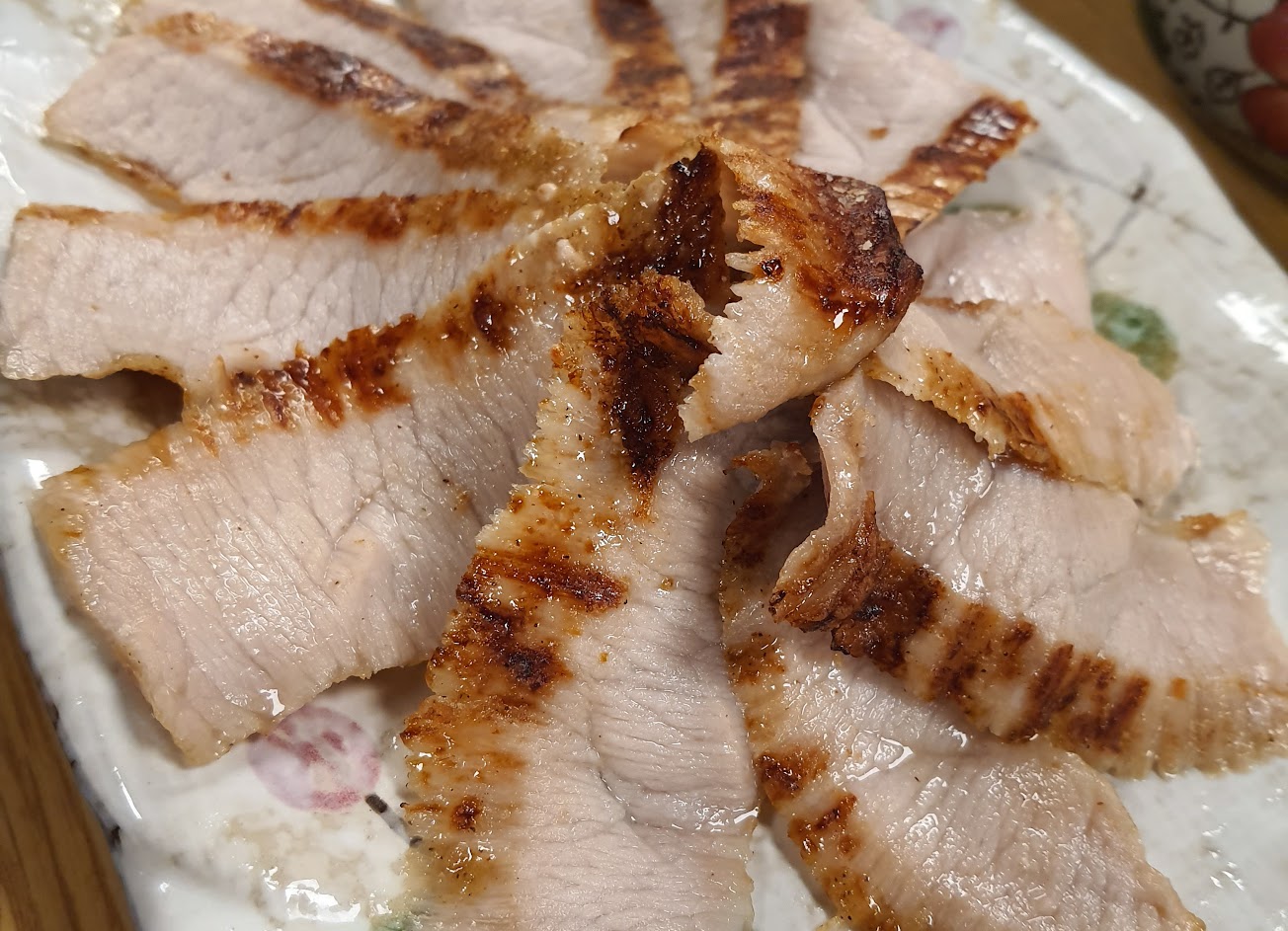 有個小插曲,我們點了一盤烤松阪豬,跟朋友各吃2片後覺得有點鹹,反應了之後老闆不囉嗦立刻烤一盤新的,覺得很有誠意又爽快!