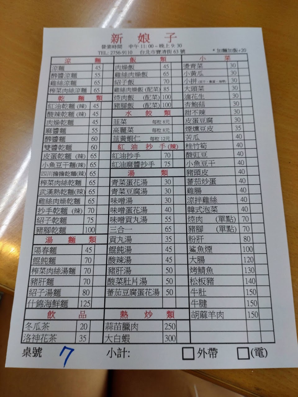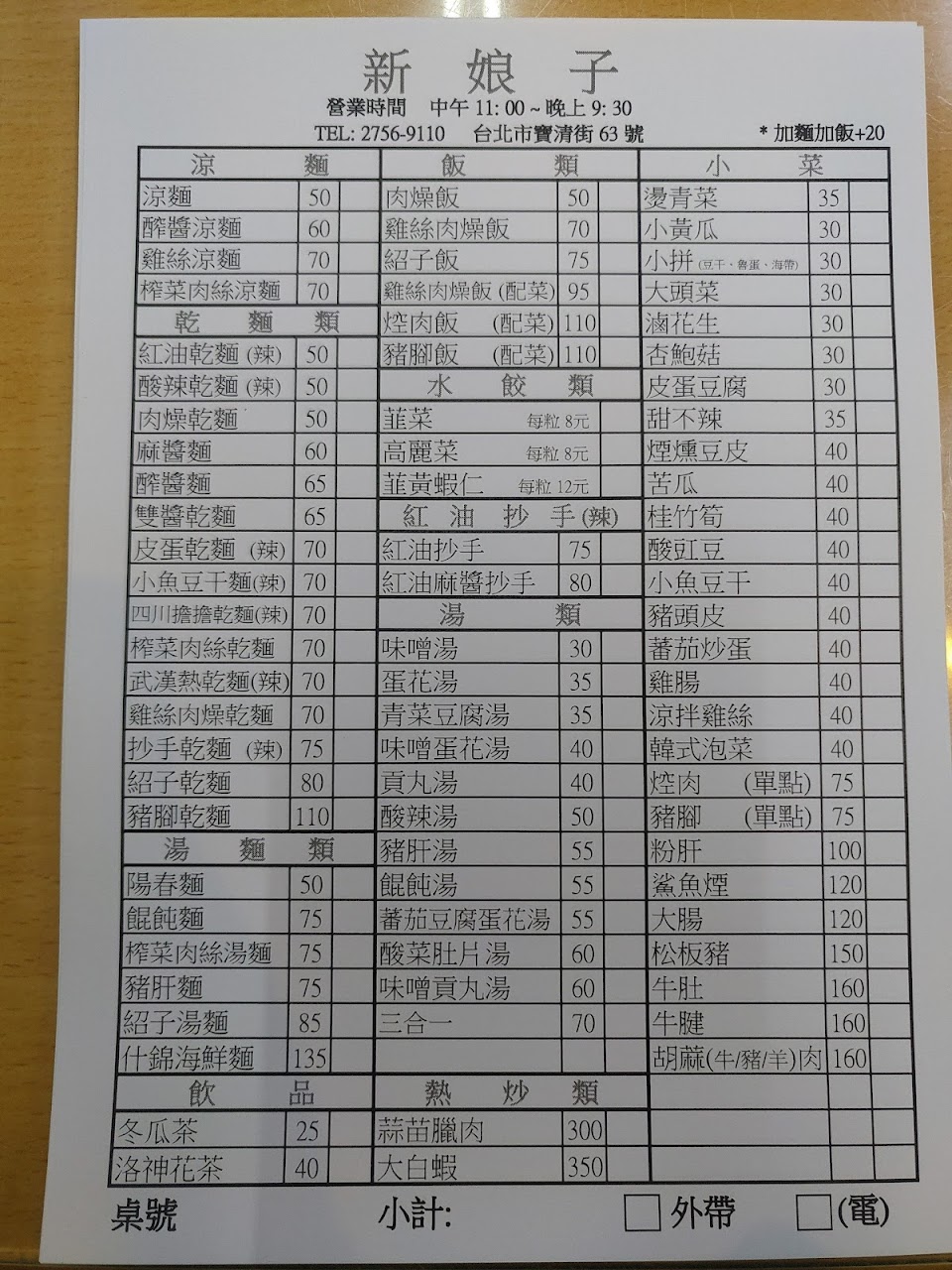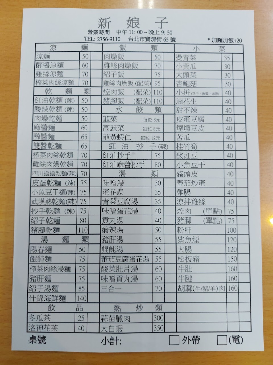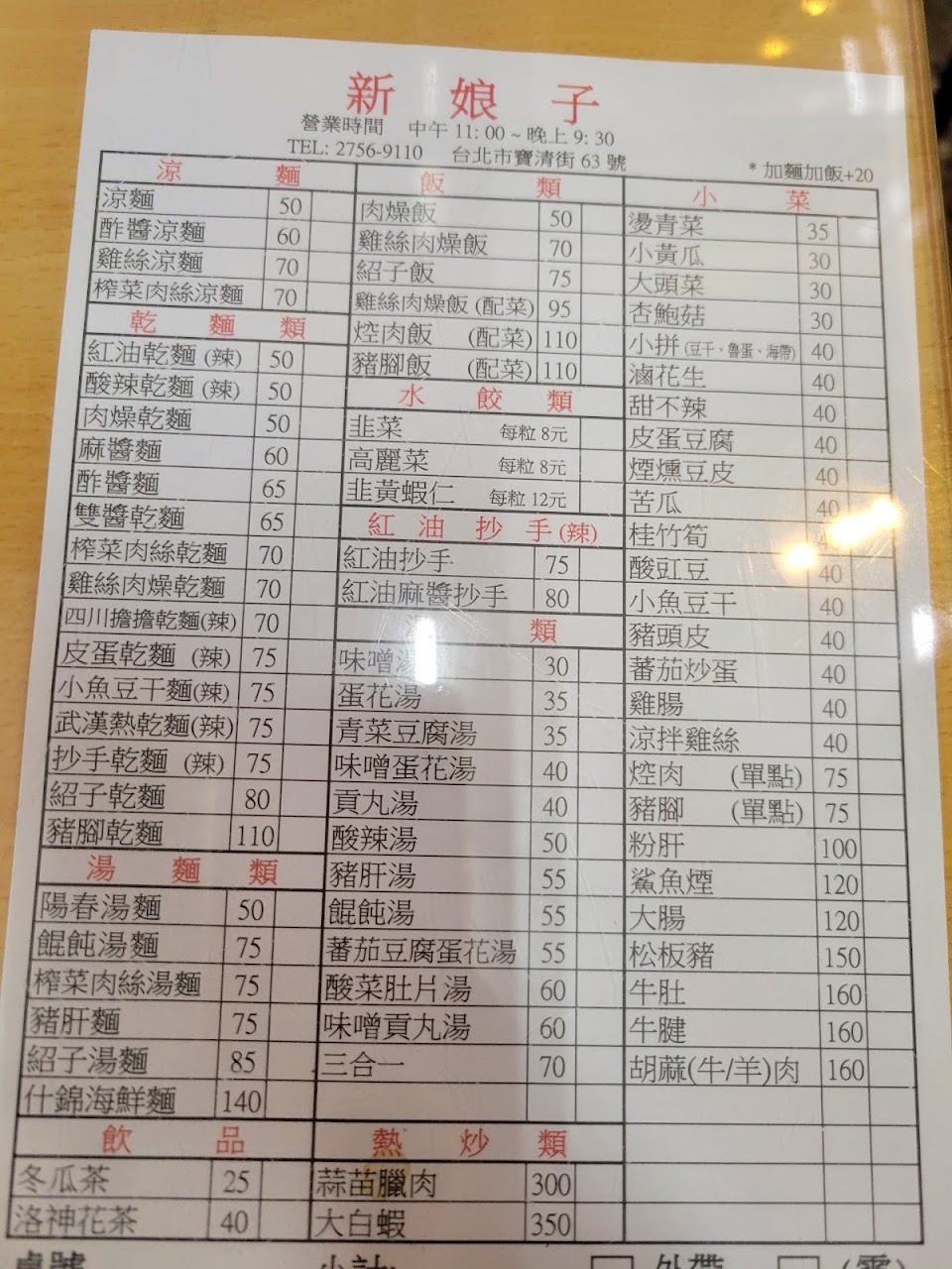 2024最新在地推薦餐廳的菜單_新娘子麵店小吃的菜單、圖片