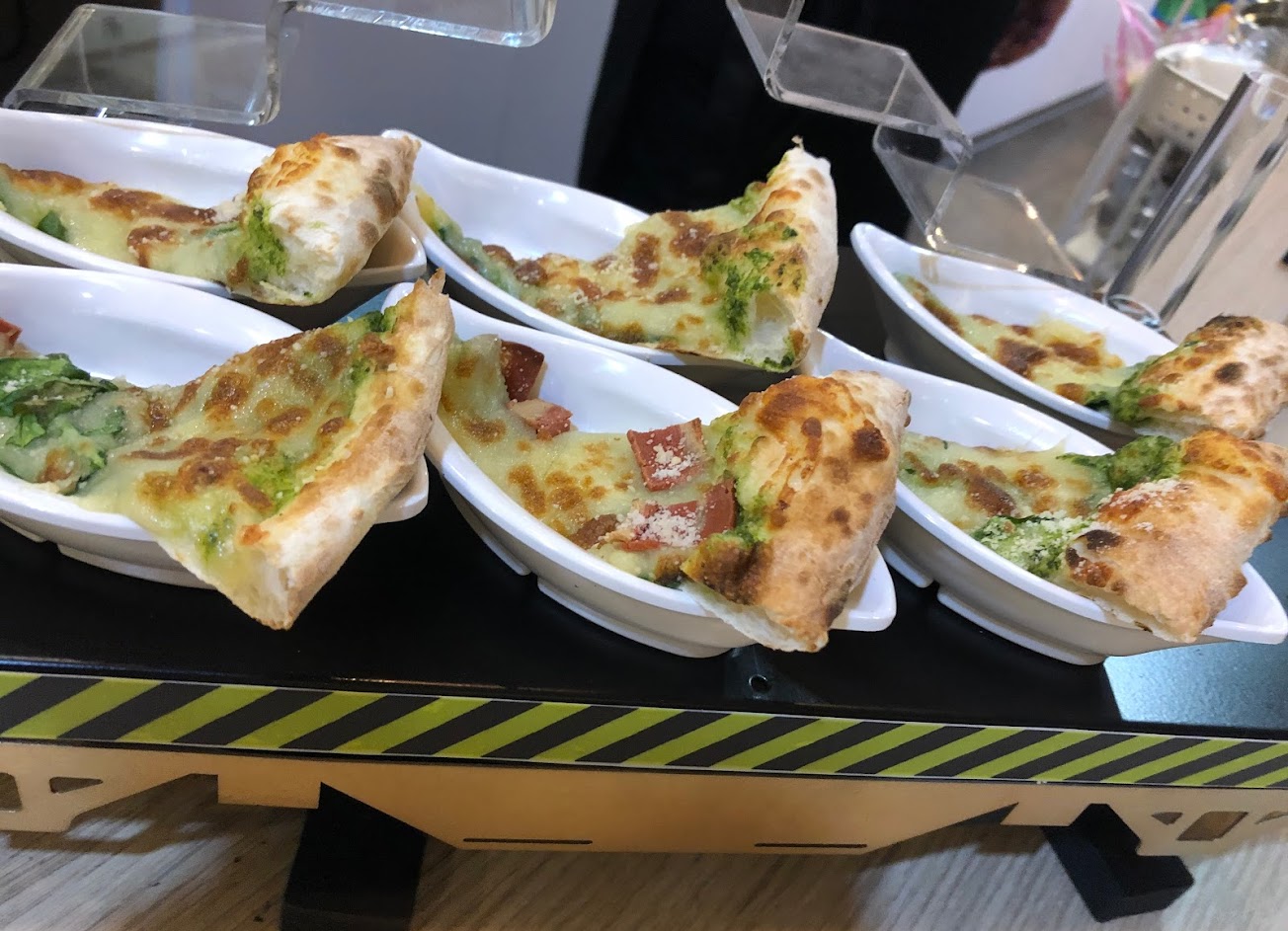 1.小火車上的熟食幾乎全部都是冷的,包括披薩、炸物等,只有一個小型焗烤是現做是熱的。