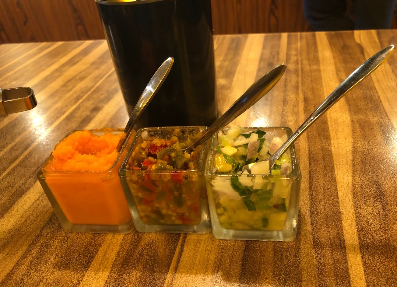 外場服務部分: 除了上菜還有加湯很積極以外沒有服務可言,沒有人問是不是來用過餐,上來三個沾醬(非常見的沙茶醬、青蔥蒜泥等),完全看不出來三個沾醬是甚麼沾醬,味道如何要搭配什麼食材使用,只能自己嘗味道,其他桌上都有衛生紙就我們桌沒有然後要跟外場要,吃完雜炊請店家幫忙把剩菜打包以後問了一下菜是不是都上完了,說都上完了,拎包站起來走人才說你們還有一個冰淇淋(只好續坐下來用餐)(當天場內只有三桌)