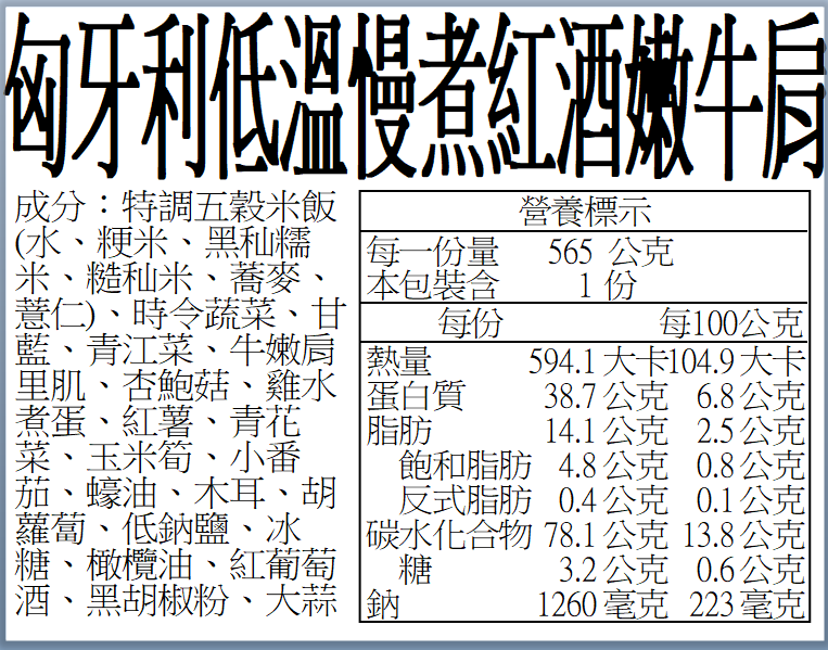 蔬食的菜色很豐富,只是可能平常吃習慣少油飲食,覺得整體口感偏油一點點,不過不影響它的美味。外盒有營養標示也很讓人安心