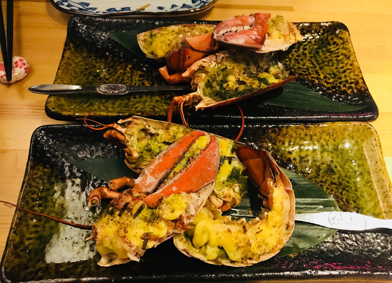 (活海鮮龍蝦螃蟹一整隻是兩人份 建議兩人都要點無菜單 今天因為只有一人點無菜單料理 所以有加價升級成一整隻龍蝦)