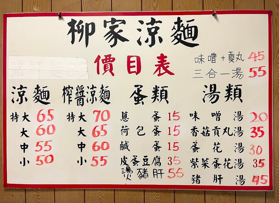 2024最新在地推薦餐廳的菜單_柳家涼麵的菜單、圖片