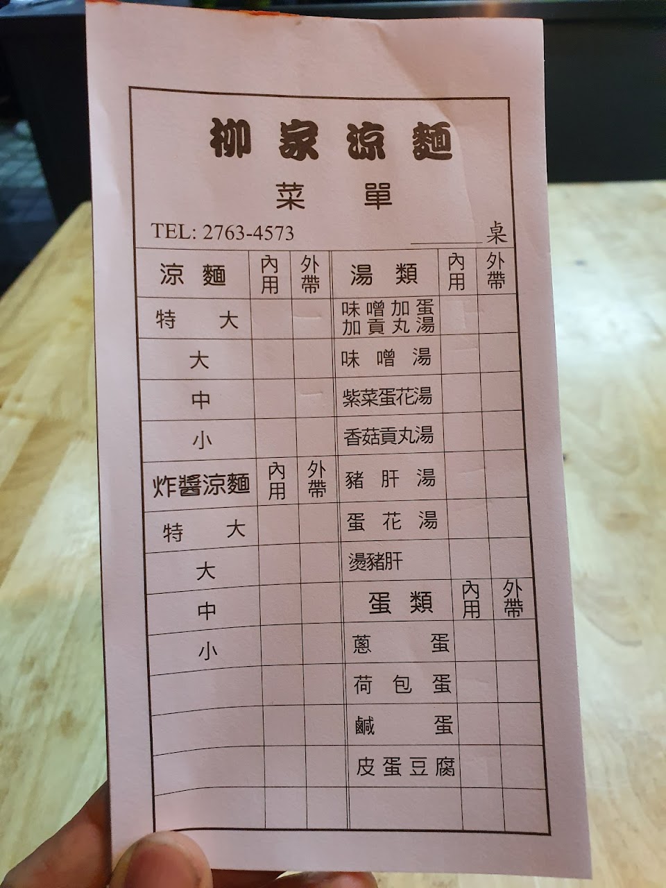 吃了5 6年了 最好吃涼麵沒有之一 是間需要老手帶吃才能吃出真實力的涼麵 常看到新手涼麵上桌後直接吃然後嫌沒味道五告北七 真正的吃法應該是去旁邊醬料桌上依照自己的喜好加上蒜、辣椒、芥末等 (個人喜歡兩匙蒜、三匙辣椒、白醋加爆) 另外涼麵必須配一個半熟荷包蛋再一碗湯當作SET 味噌湯屬於甜味比較少,鹹味居多的口味 也可以另外在菜單上寫味噌湯加蛋,價格比三合一經濟許多 喝習慣他們家的味噌湯後後會覺得其他間味噌湯太甜 豬肝湯有時候會有豬肝不小心太老的問題,機率大概20%吧 燙豬肝就不會太老,第一次來強力推薦要點燙豬肝 人生吃過最嫩的燙豬肝就在柳家了 喔然後內用記得用鐵筷吃,會比用免洗筷吃起來好吃