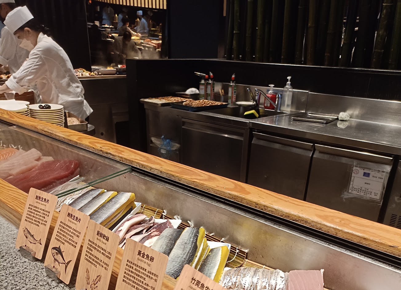 環境很寬敞,餐點動線也很棒,不會一直在排隊取餐的感覺。餐點偏日式,生魚片和壽司、手捲都很新鮮,炸物也很酥脆,只可惜現切牛肉筋比較多。