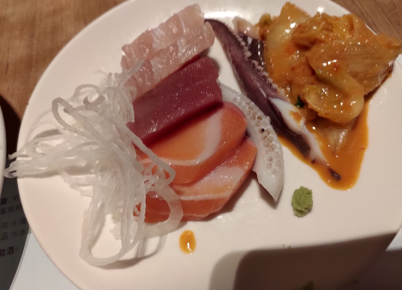 生魚片、握壽司非常新鮮,光吃生魚片我就覺得非常值得了,旗魚、鮪魚、紅甘、黃金鯡魚、鮭魚、軟絲⋯等等。