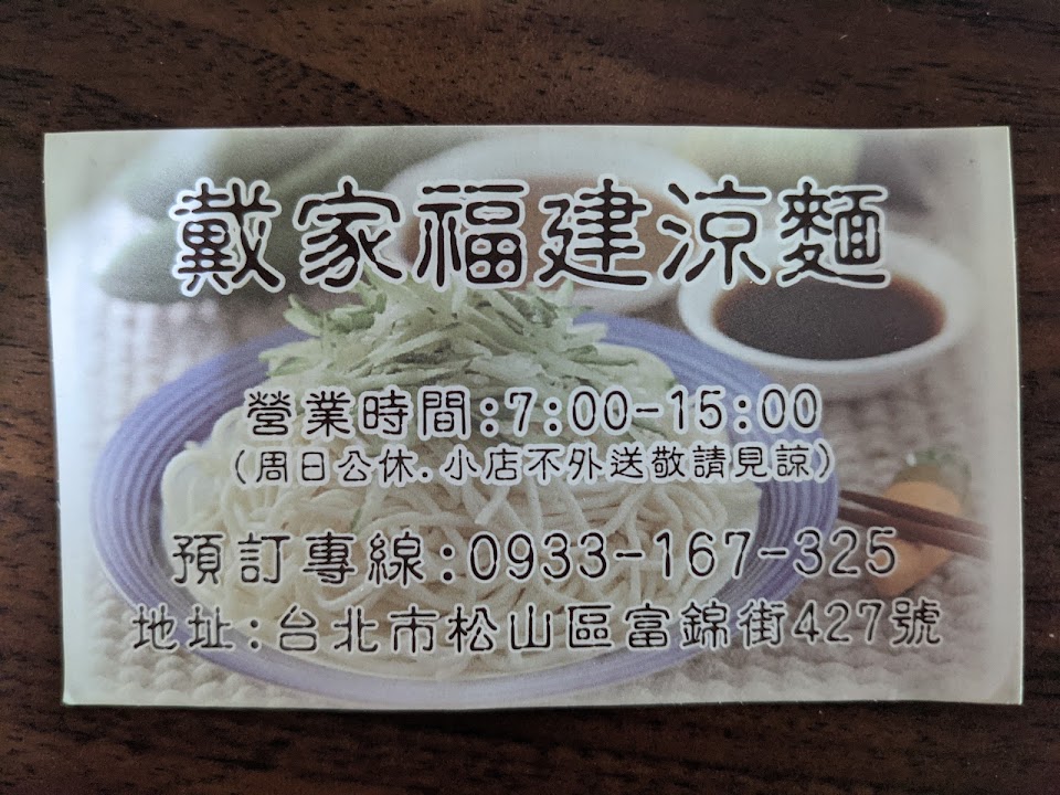 2024最新在地推薦餐廳的菜單_戴記福建涼麵的菜單、圖片
