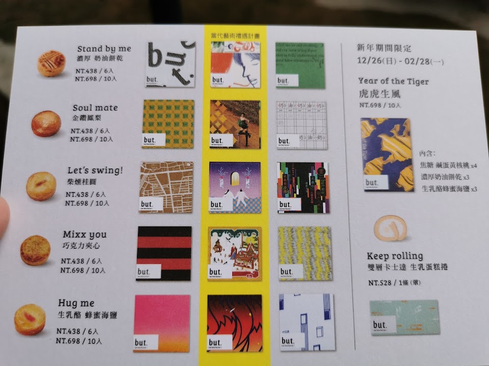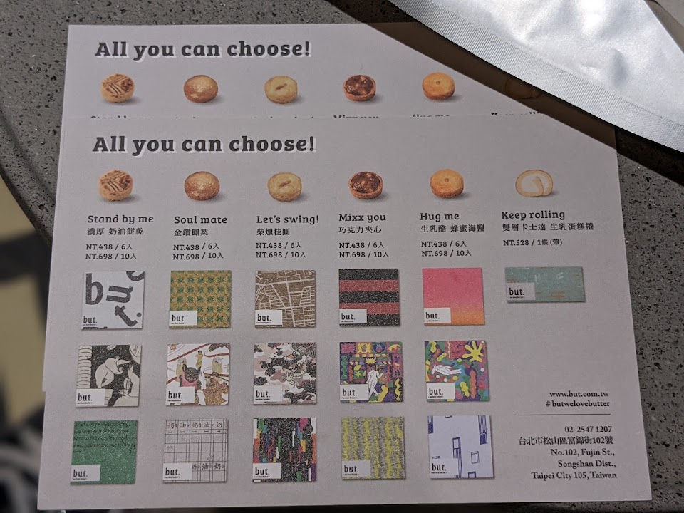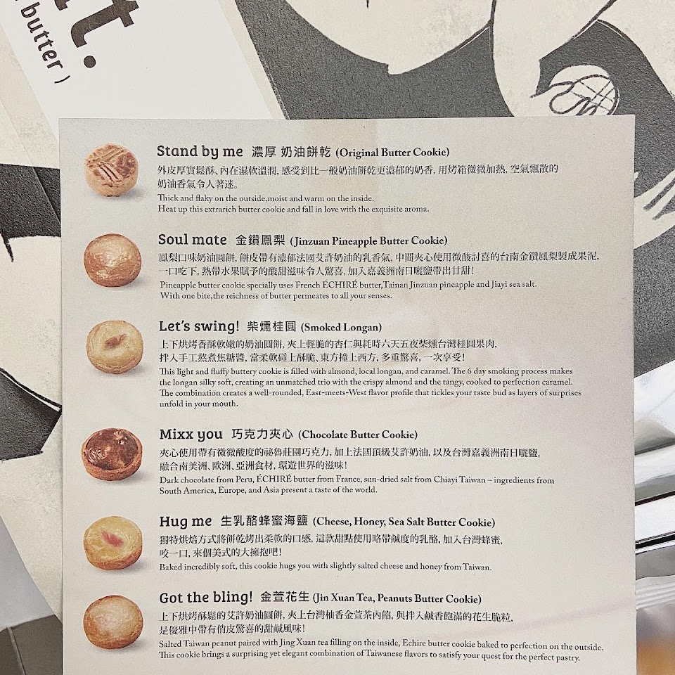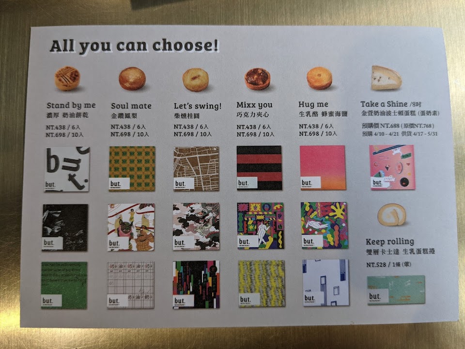 堅持只使用法國頂級艾許奶油?和台灣嘉義洲南日曬鹽?,外皮厚實酥脆,內在濕軟溫潤,享受到比一般奶油餅乾更濃郁的奶香,用烤箱微微加熱,空氣中飄散的奶油香氣令人著迷?從包裝設計到整體風格呈現,對食材的用心到對客人的用心,but. 讓奶油甜點變得不只是在吃甜點,那是一份生活心情體驗,一定要來一趟but.,感受屬於您的奶油甜點滋味?