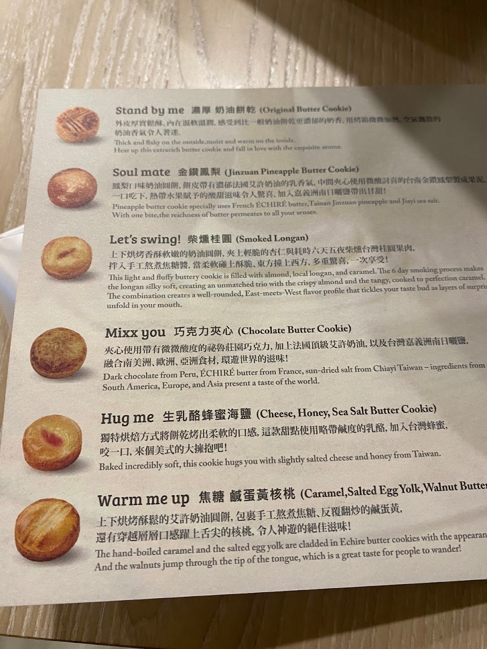 有提供半個餅乾和茶試吃~店面裝潢很有創意,還有餅乾選購指南,很適合來送禮!