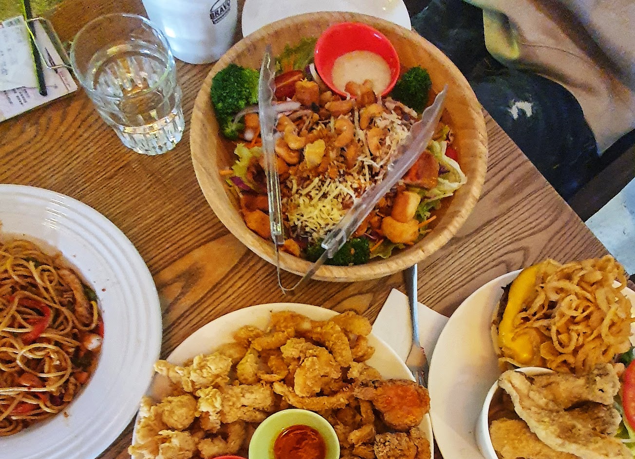 坐下後點餐不到五分鐘沙拉就來了,炸物接著來,還沒吃完沙拉,燉飯、漢堡隨後就到