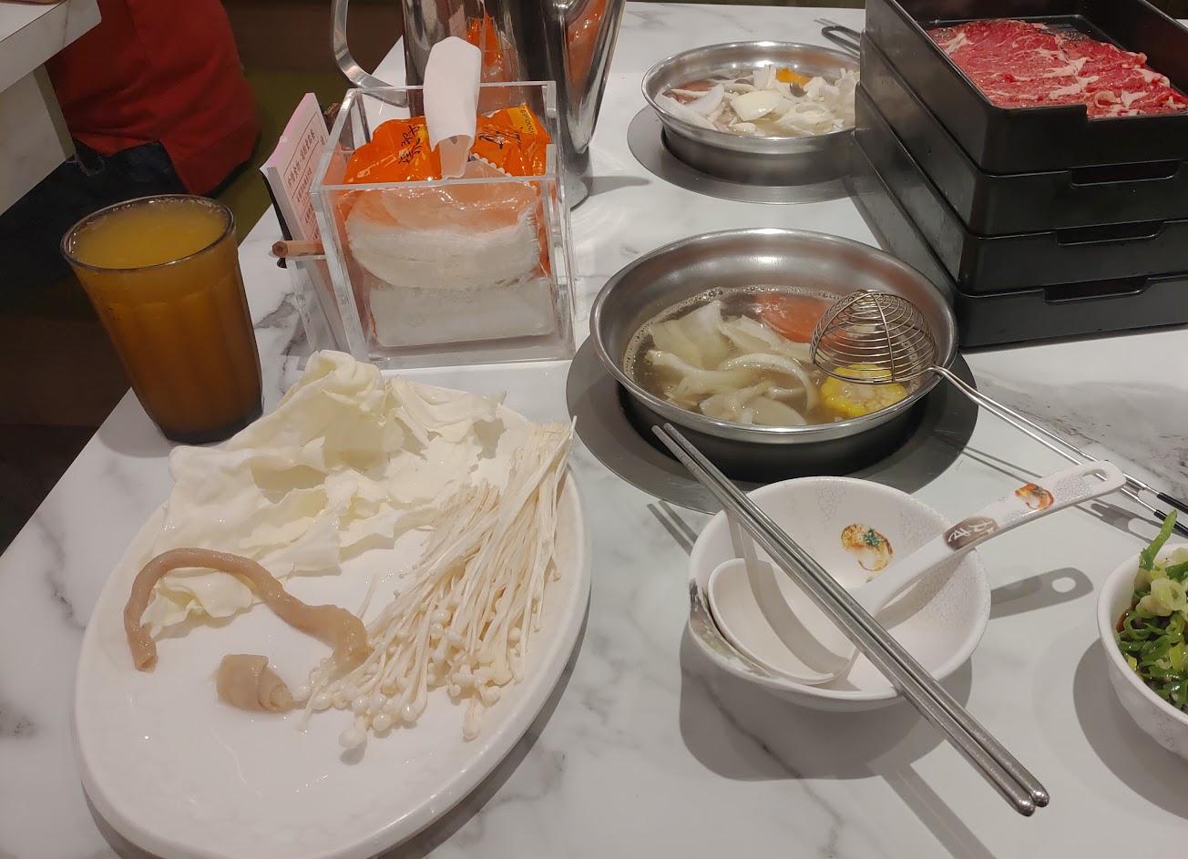 肉必須要用點的不是自助,送來的非常薄,雖然說這樣比較快熟但煮起來容易散掉,菜色不算豐富,吃一個小時我就覺得很膩了