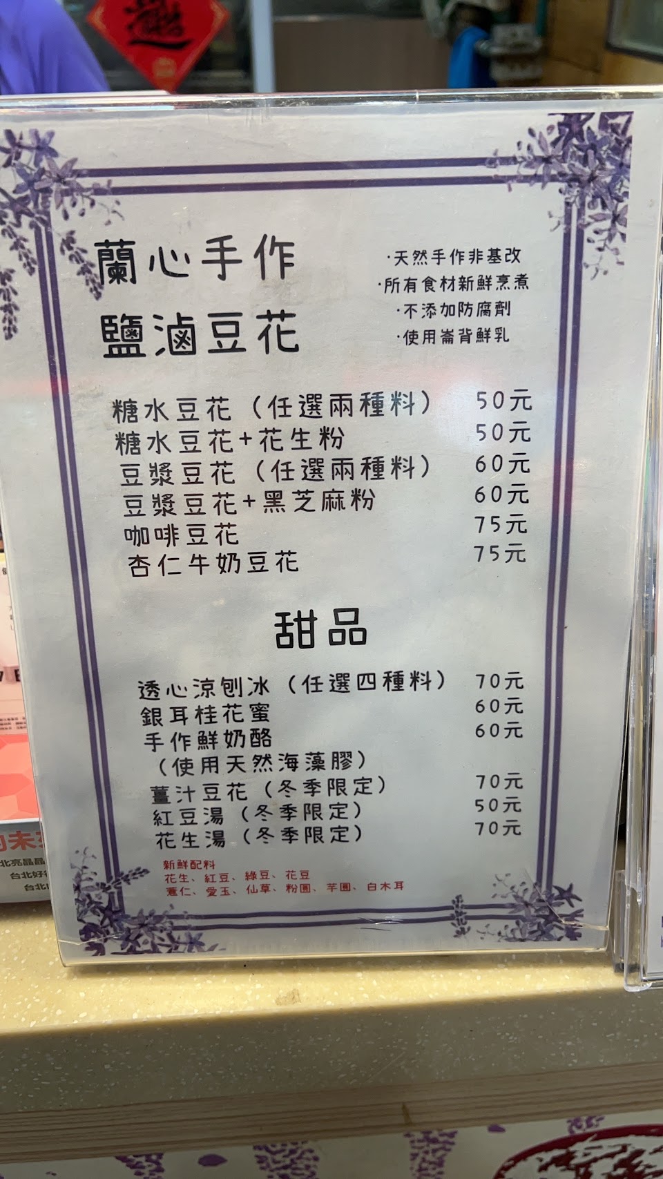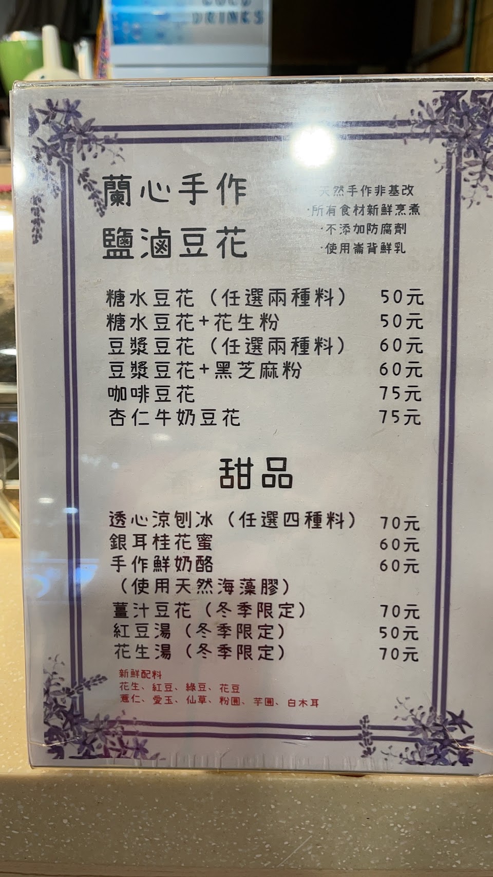 2024最新在地推薦餐廳的菜單_蘭心手作坊 天然鹽滷豆花的菜單、圖片