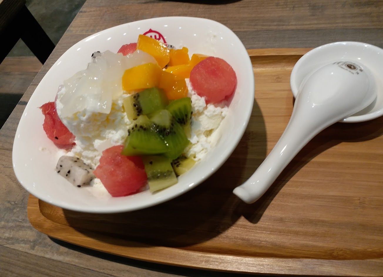 6月4號吃完漉海鮮,跟朋友一路走順便消化,決定走到微風廣場去喝咖啡,路上經過進去點一個甜品,品項蠻多的,因為天氣熱點了蓮子蛋白燉椰皇、鮮果鮮草凍,店內有點凌亂,味道普通.
