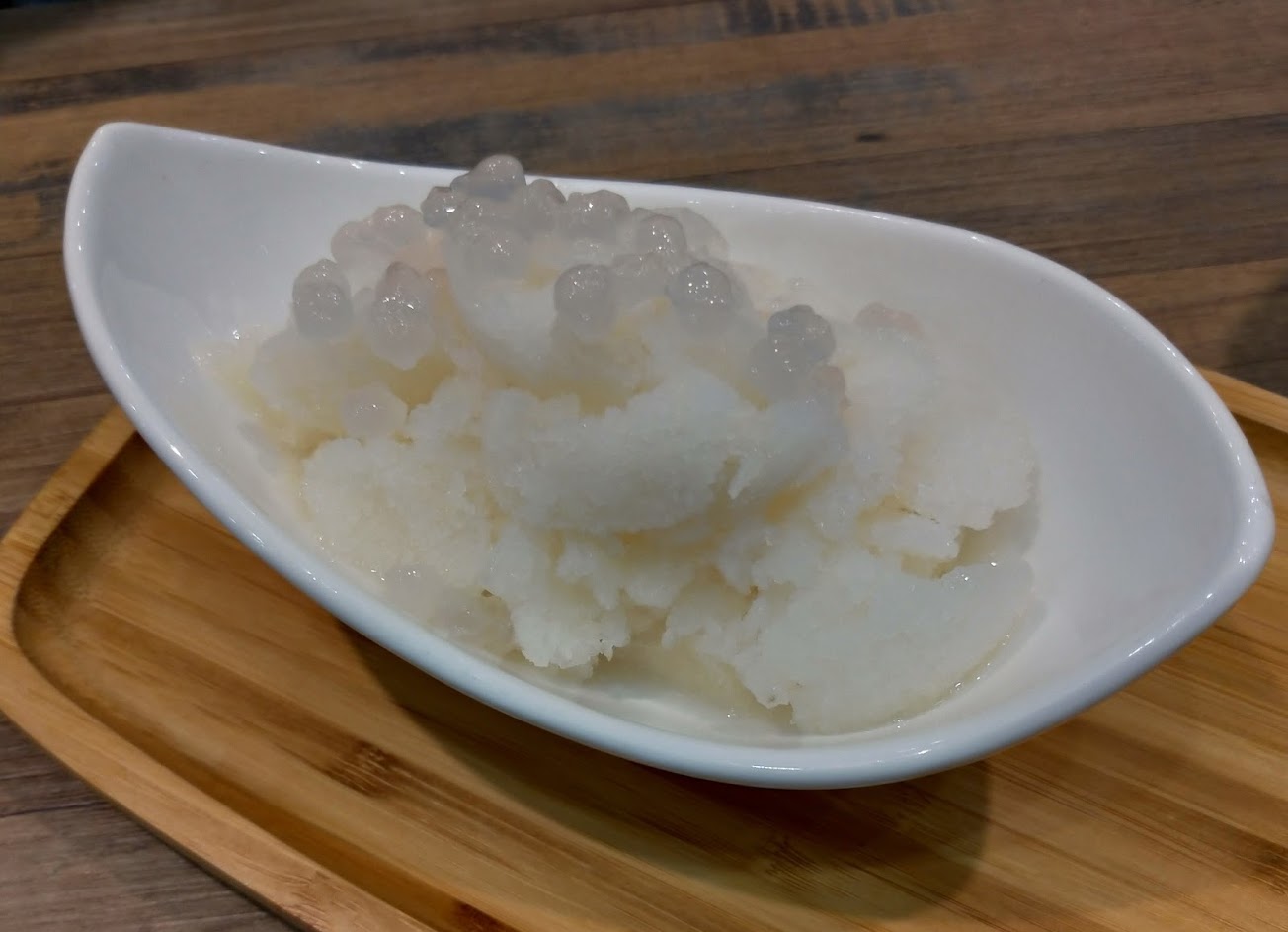 (1)蛋白口感似不甜不膩的優格,椰肉本身十分好分離,搭配蛋白甜度適中。這道甜品就算用餐後來吃也不會讓胃感到負擔。