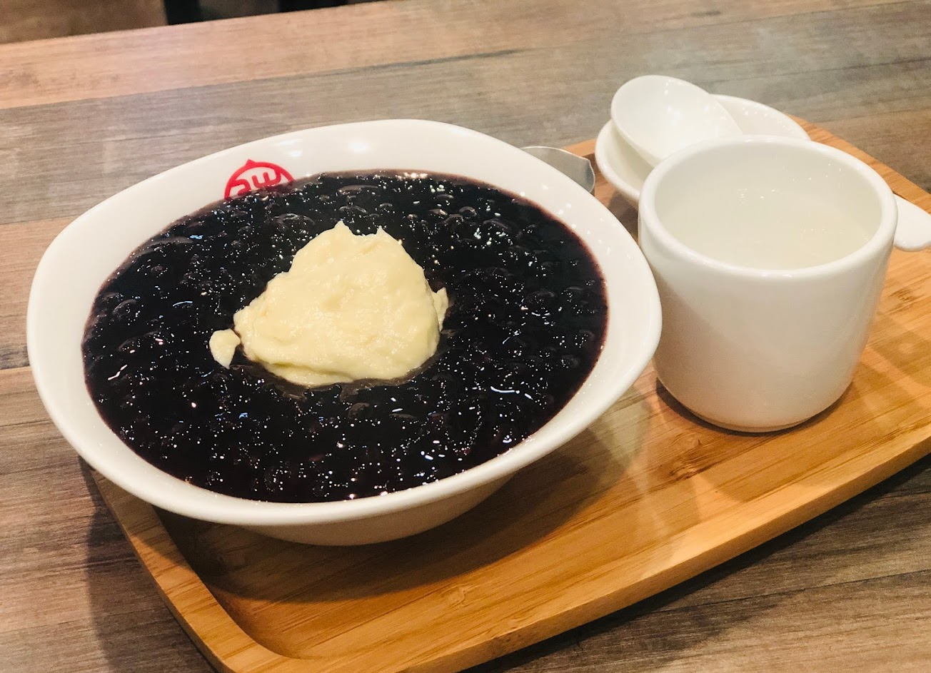 點了燉奶和杏仁糊,原本看評論說燉奶很甜,吃起來不會,應該是有改良過,因為我平常是喝無糖飲料的人,吃起來奶香香微甜,還不錯的口感,杏仁糊杏仁味沒有很重,但有濃厚的杏仁,也不錯。