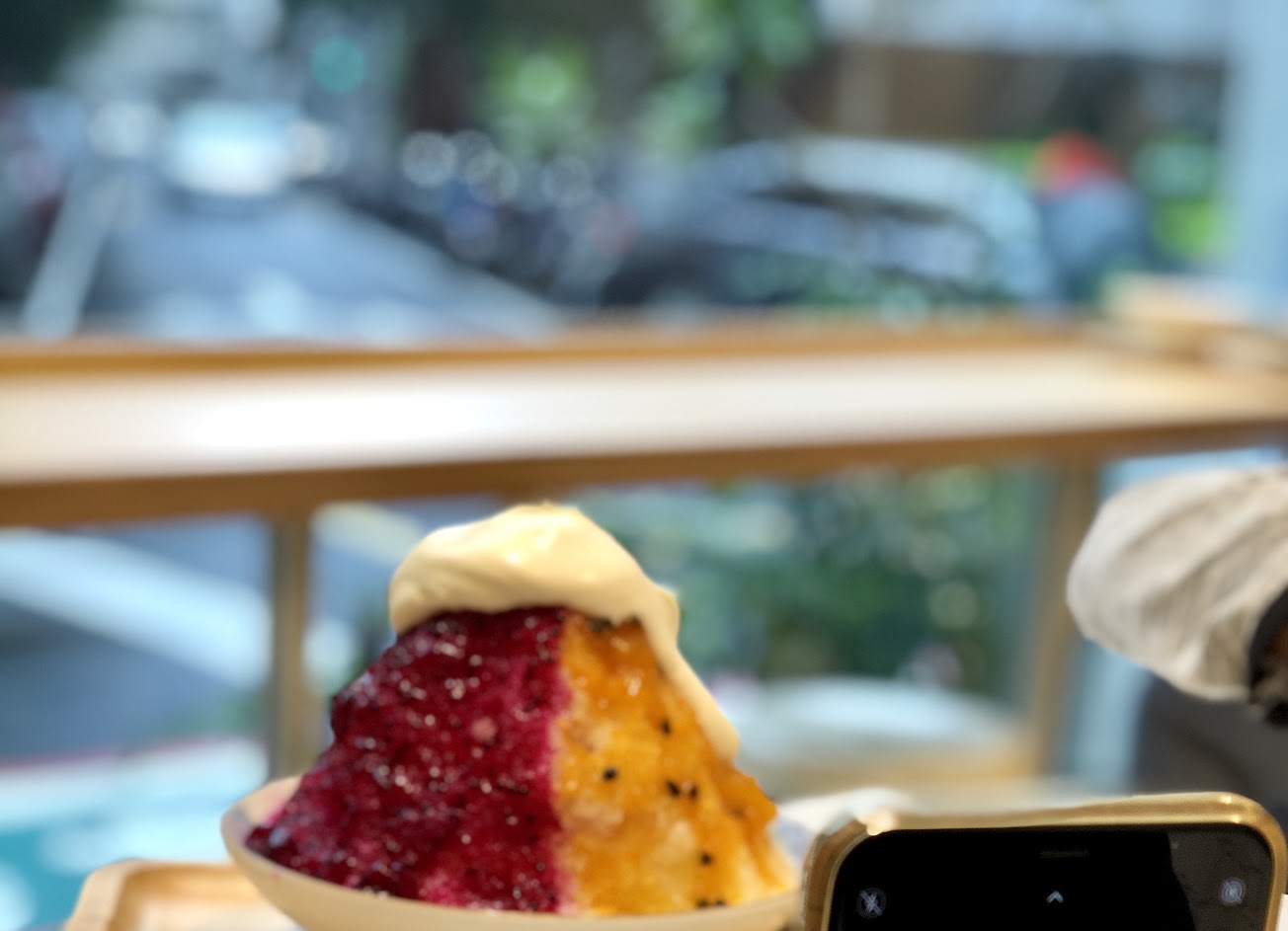 冰品蠻特別的 珍珠奶茶冰有兩種珍珠 上面還有一塊芝麻奶酪 擺盤滿文青的 大家要做好排隊久等的心理準備