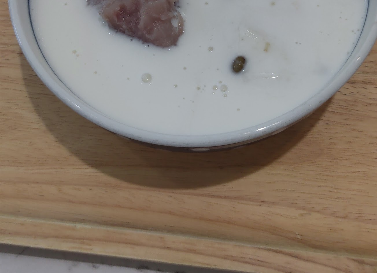 原味手打杏仁豆腐,手打杏仁豆腐有類似麻糬的延伸感,杏仁醬味道濃,芋頭好吃,綠豆比較普通。