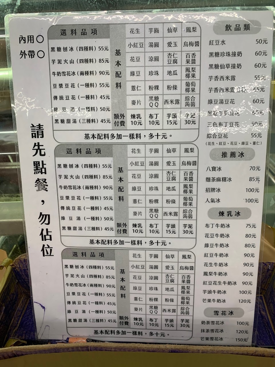 規定很硬,一定要先點餐才可以找位置坐,不能先佔位,阿就那麼幾個人吃冰我能佔幾個位置???不准佔位公告又不貼在顯眼的地方。如果內用沒位置難道我捧著碗等ㄇ?