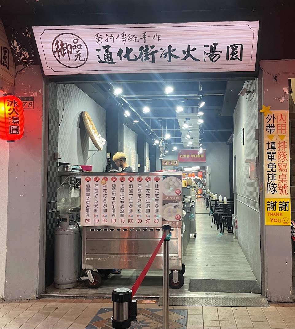 湯圓冰的湯圓要趁熱吃 冷掉很硬不好咬 酒釀跟桂花個人喜歡桂花的香氣 但覺得通化街的比較好吃