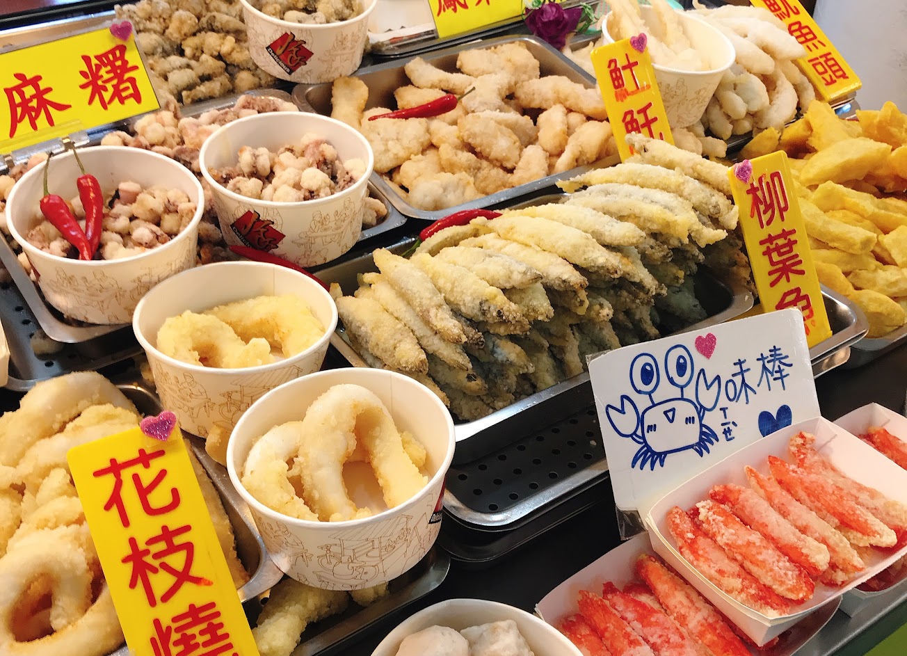 賣炸物的攤位還蠻多的,君美現炸海鮮攤位雖然比較小一點,選擇也沒那麼多,但是攤位弄得乾乾淨淨的,標價也都很清楚,有任何疑問也都可以隨時問老闆娘,老闆娘服務態度也非常親切。