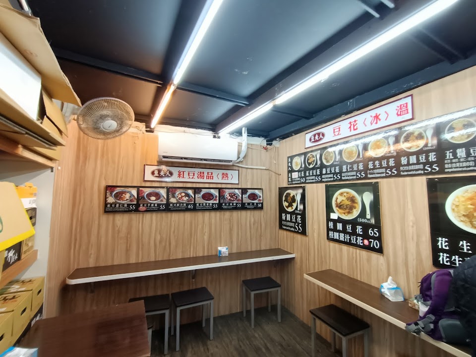 位在國軍松山醫院對面,住宅區的一樓 座位不多,環境整潔,老闆娘友善 目前僅吃過豆花、綠豆湯、紅豆紫米粥 很適合當下午或晚餐後的點心 特別喜歡桂圓豆花,外面很少遇到有賣桂圓豆花的~ 糖水不會太甜,豆花也很綿密,裡面還會加密鳳梨 味道很棒!!!