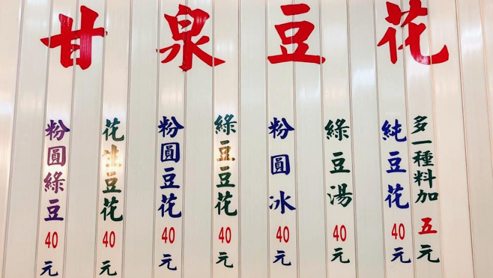 2024最新在地推薦餐廳的菜單_甘泉豆花-饒河店的菜單、圖片
