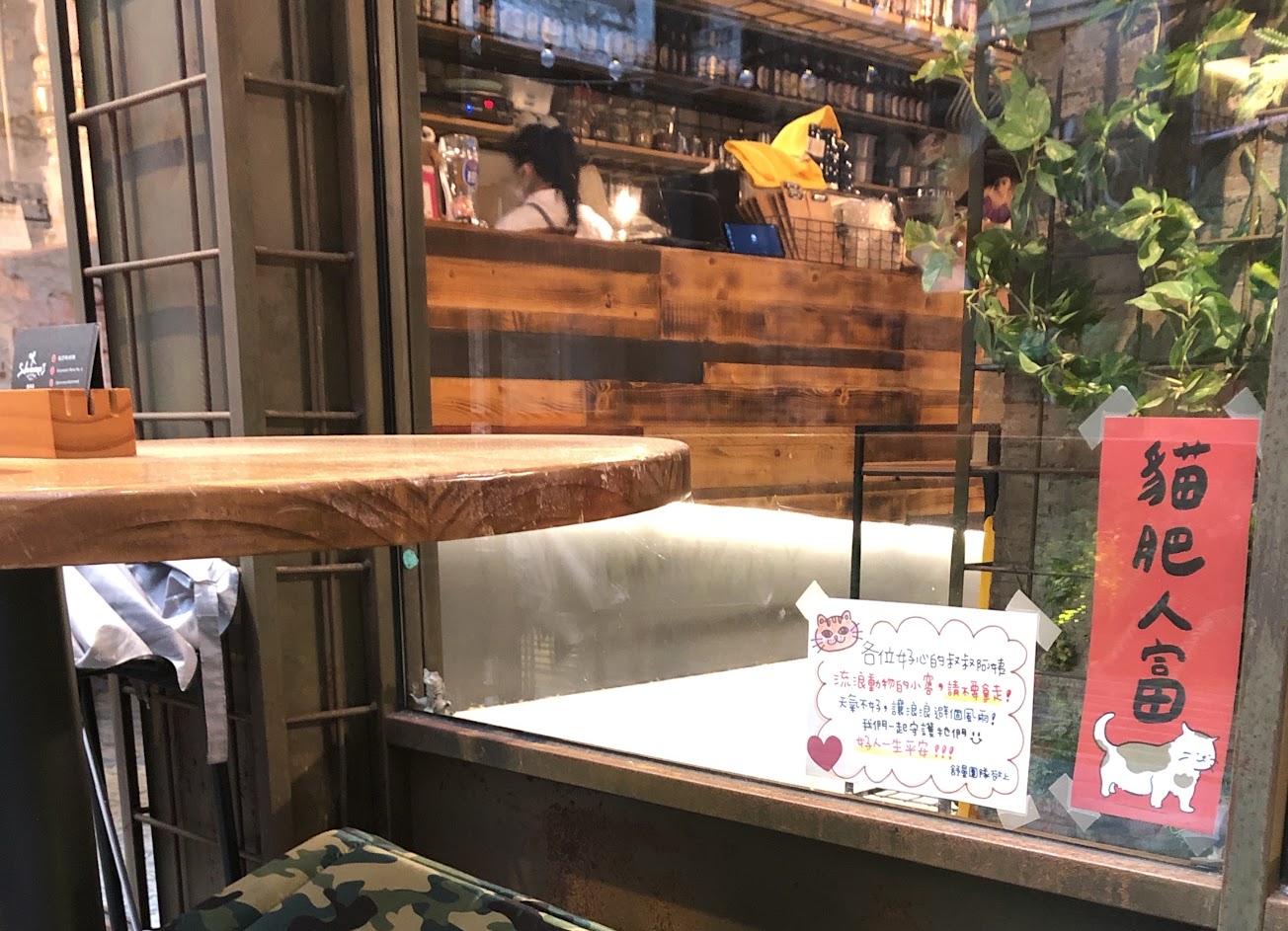 店面裝潢有特色, 也有巧思;門口正對面就是傳統台灣宮廟, 有強烈的反差.