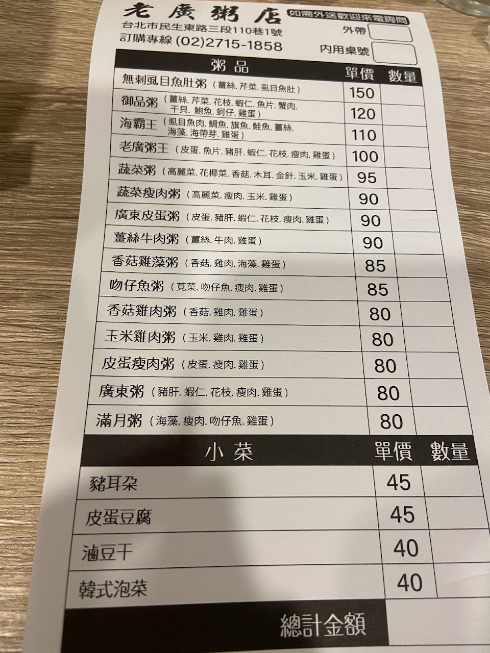 2024最新在地推薦餐廳的菜單_老廣粥店(廣東粥)的菜單、圖片