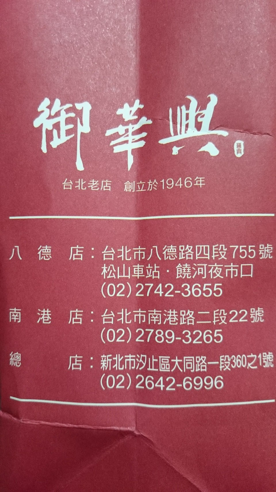 2024最新在地推薦餐廳的菜單_御華興食品-饒河旗艦店 | 台北伴手禮 台北訂婚喜餅 台北麵龜壽桃 台北麵包蛋糕 台北會議餐盒的菜單、圖片