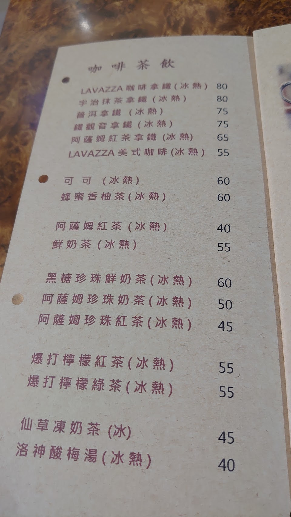 55元冰咖啡及熱紅茶