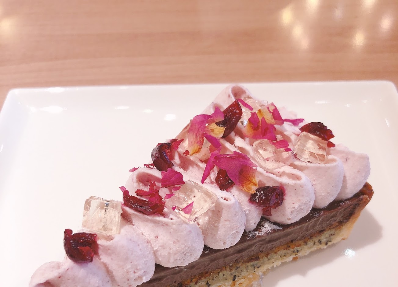 巧克力伯爵:巧克力甜而不膩,很稱伯爵塔皮,上方的花瓣味道也不會太搶戲,整體很清爽。