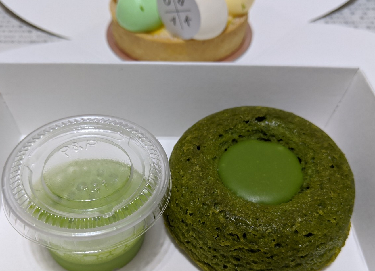這次用了甜點節的護照到店內購買抺茶圓圓,但實際上拿到的商品確跟網站上有很大的落差。從網站上明確可見應該有三個元素:蛋糕、淋醬以及上面的裝飾物,但實際拿到的只有蛋糕及淋醬兩項元素,有廣告不實之嫌