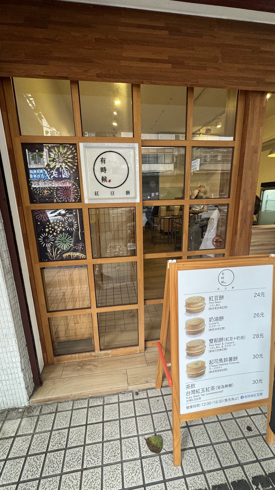 小巧簡約的甜點攤位,附設點餐窗口,並以紅豆餅和奶油餅而廣受歡迎。
