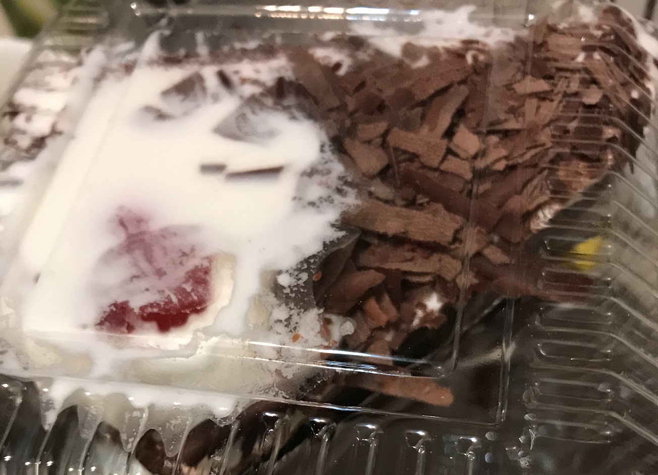 把一個黑森林切片蛋糕包裝成這樣⋯⋯ 這種服務品質、有尊重蛋糕跟客人嗎? 門市人員均無笑容、這麼忙碌的蛋糕業者、不是很滿意。