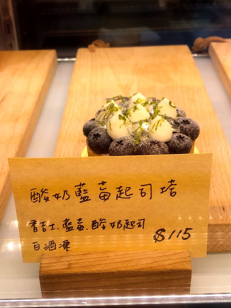 藍莓塔115元,味道很讚,一顆顆藍莓、酸奶、檸檬皮、藍莓醬、內陷還包著柳橙果肉,很有層次,不過分甜或膩,小小一個,很快就吃完了?意猶未盡。
