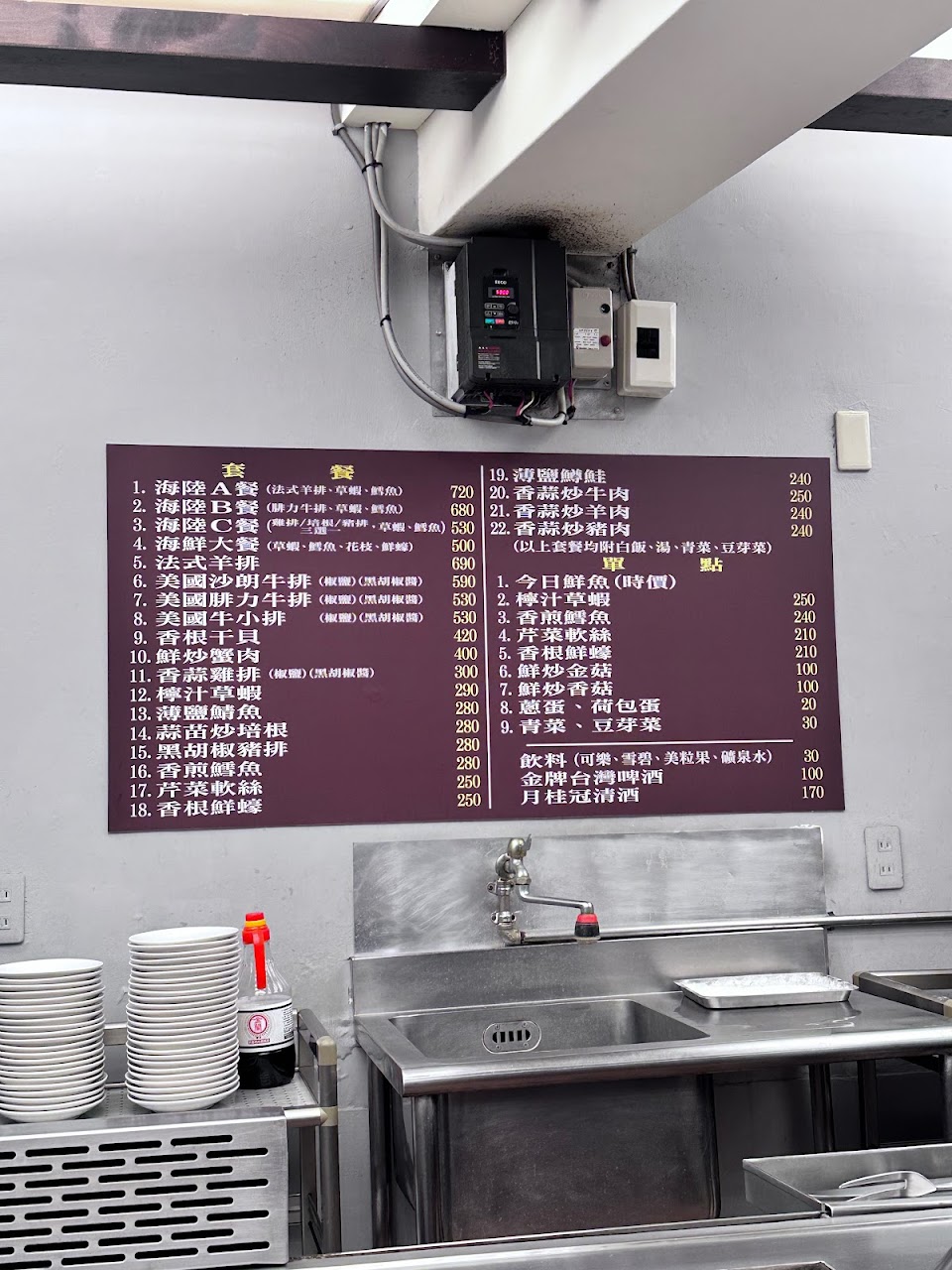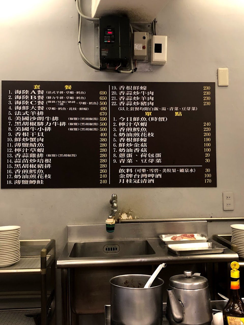 再來說缺點:份量對應價格來說不太優、食材品質也沒有比一般大眾鐵板燒店好,我點了最貴的A餐690$(羊肉兩小隻、兩隻草蝦(還ok)、過薄的鱈魚導致魚肉甜味沒出來)、老婆的雞肉280$也偏柴,乾煎的雞肉過熟了,現場後面已經沒其他客人…..超失敗….附上的蒜片還略焦也變色也照樣上桌