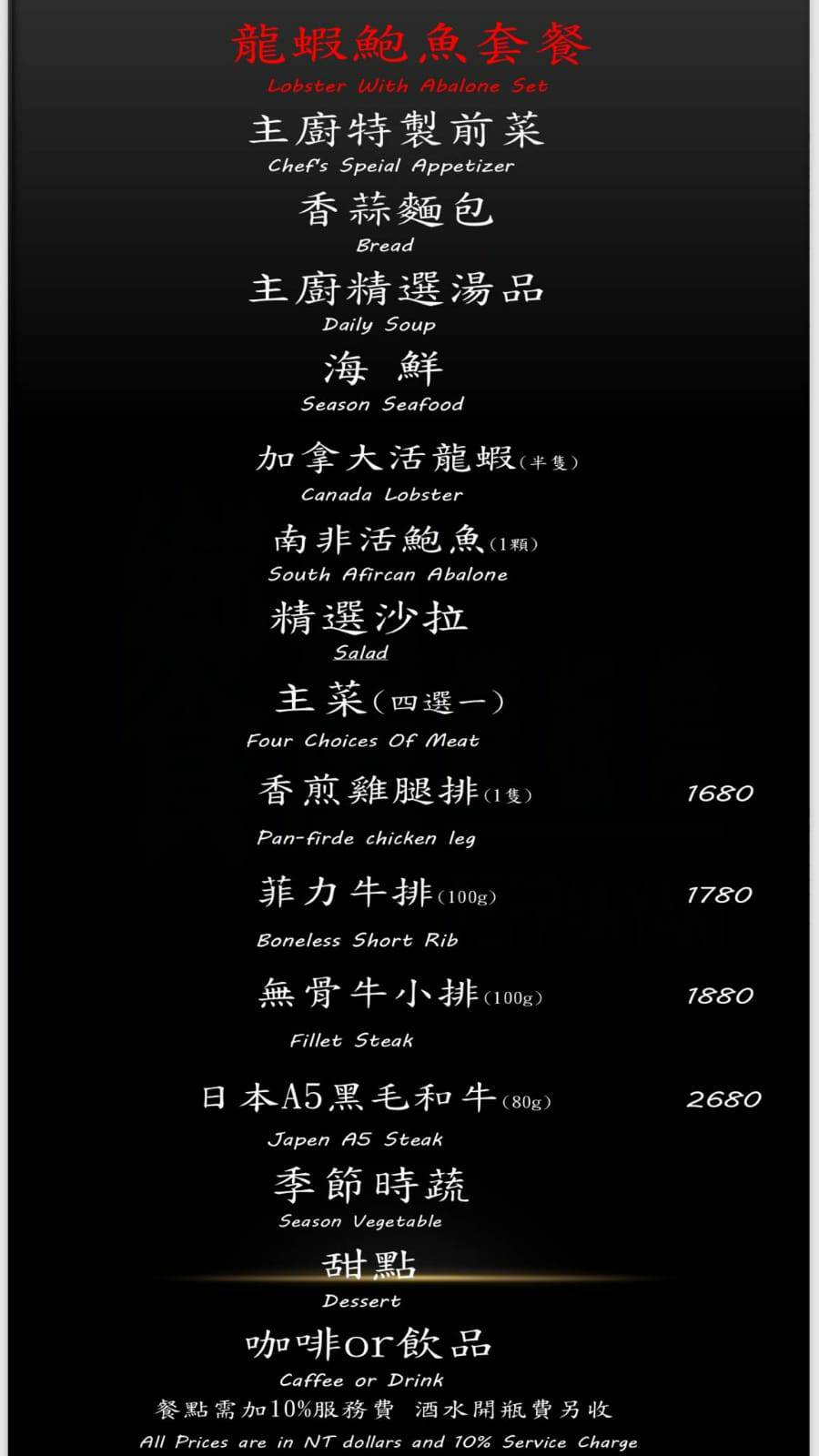 餐點好吃,氣氛跟服務也不錯,但出菜的順序很不OK,例如湯及開胃菜之後,就出龍蝦主餐,主餐之後才出生菜沙拉,感覺在省時間,跟別桌餐點一起烹煮。畢竟這是上千元的餐點,不是美食街。