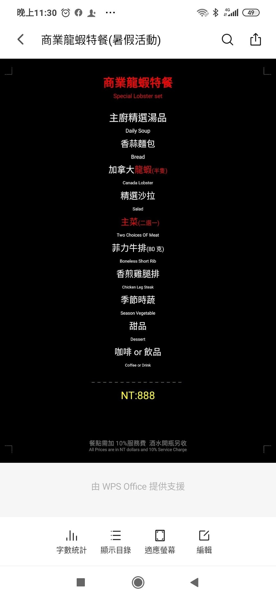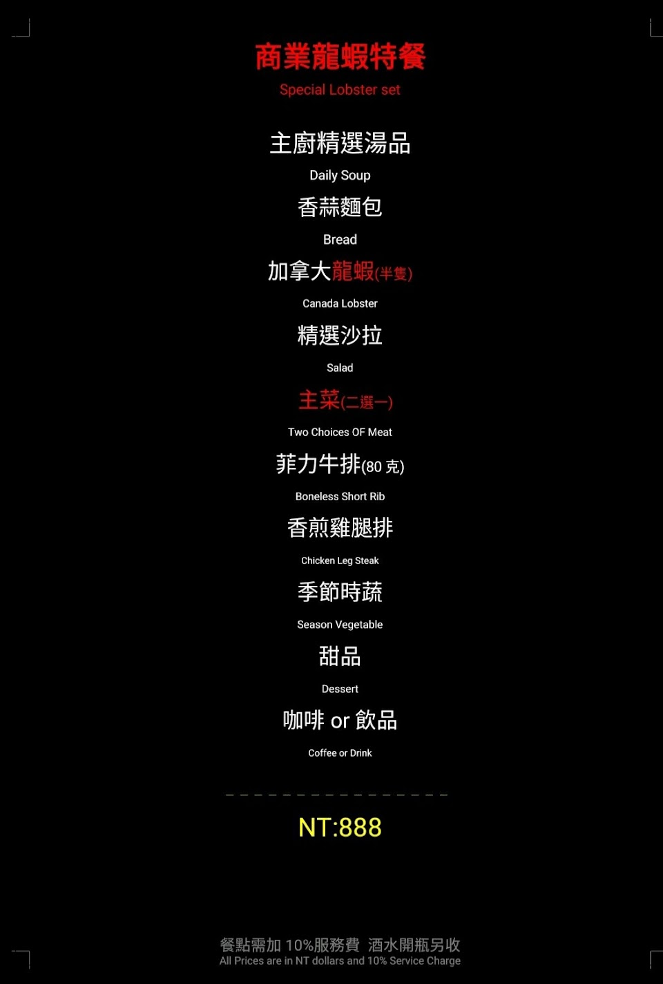 因為過年龍蝦套餐要2000 一般的要1500 CP值沒有網路上說得厲害 看了一下菜單還是888商業午餐比較划算