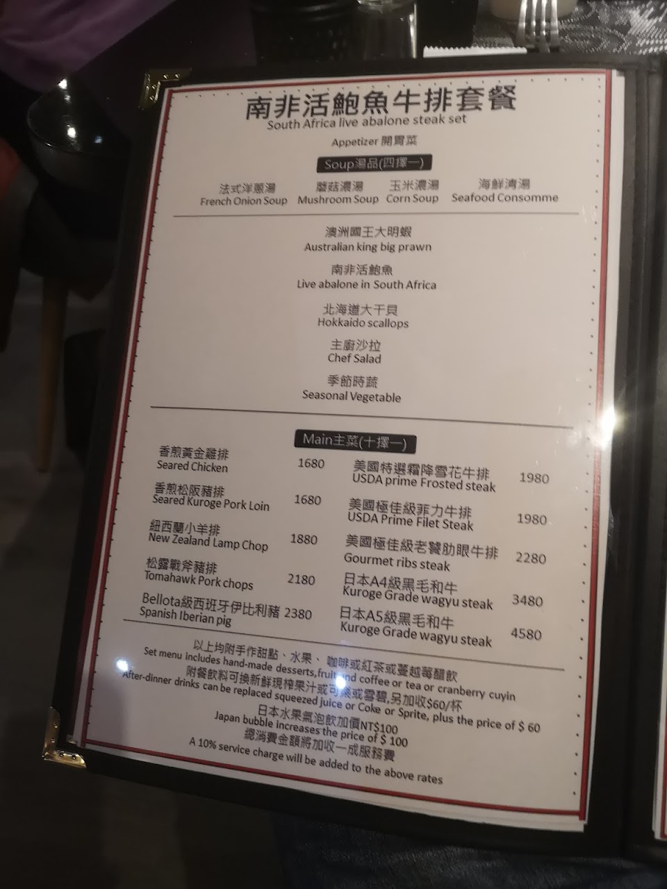 當天與朋友慶生用餐,選擇了人氣套餐1880元主菜老饕肋眼牛排。