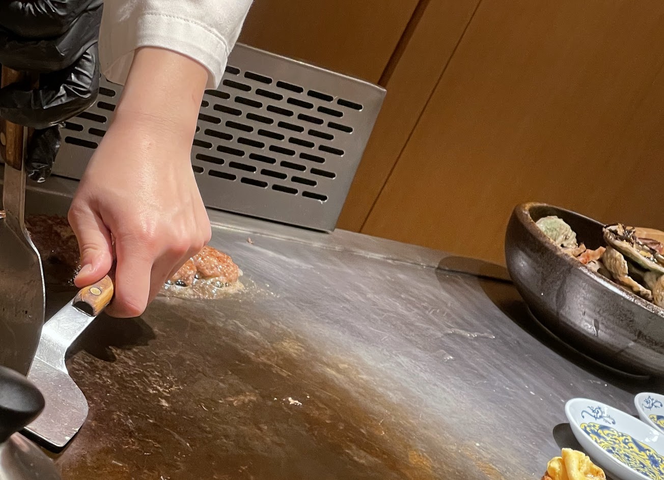 CP值超高日式鐵板燒,很少有機會吃無菜單料理,每道上菜前都充滿期待,師傅非常用心,每道料理都是藝術品,精心料理後細心的灑上調味跟擺盤,實在是視覺跟味覺的饗宴,食材都非常新鮮,師傅說日本料理太多主打食材原味而使用很少的調味,但他更偏好使用原食材調製醬料加在主食材上面,更能提升美味跟多層次,整體吃起來對照食材與服務來看,價格非常親切、實在太讚了!師傅說每個月都會換一次菜單,可以再來回顧,推推! 附上印象深刻的特色料理:昆布紙包干貝吃,很特別的味道、炸生蠔搭配蘿蔔泥,爽口不油膩、山藥泥鮮魚、 滑溜透抽、結合台灣食材的水果玉米海膽醬龍蝦,海膽醬沒有太濃郁,才不會搶了龍蝦的味道、自製柚子醬鮑魚,柚子醬很美味!還有柚子果肉,師傅說要手工把柚子果肉撥下來,白色的絲都要去除才不會有苦味,搭配鮑魚很特別讓人驚艷、最後A5和牛登場!一定要吃的香煎和牛、還有用泡芙皮做的和牛漢堡(太可愛了)、再來是和牛炒飯、最後是把前面龍蝦的碎肉加入湯裡,跟甜點收尾?