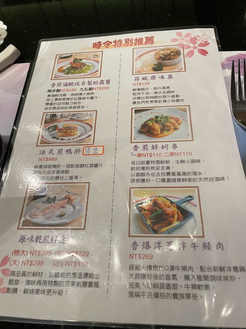 花香廳的鐵板料理,食材新鮮,主廚現作工夫很有水準,就是價位稍高了點。
