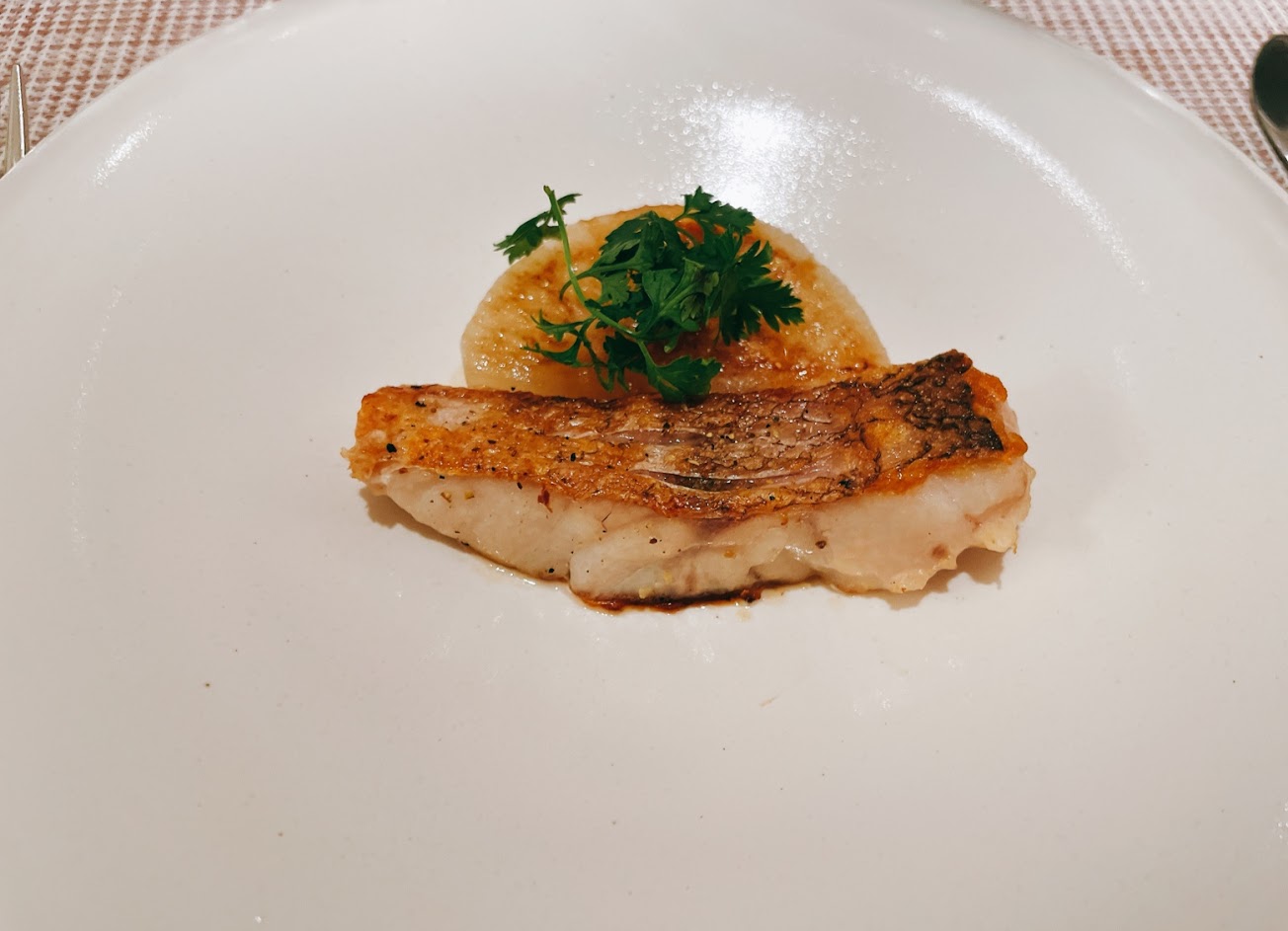 當天用餐海鮮部分表現很出色,套餐$2080可以吃到新鮮的半尾龍蝦很驚艷,煎的熟度也恰到好處出,下一道的鼎邊銼龍蝦湯非常好吃,還吃的到蝦子的蝦膏,另外干貝番茄梅子沙拉也很好吃?