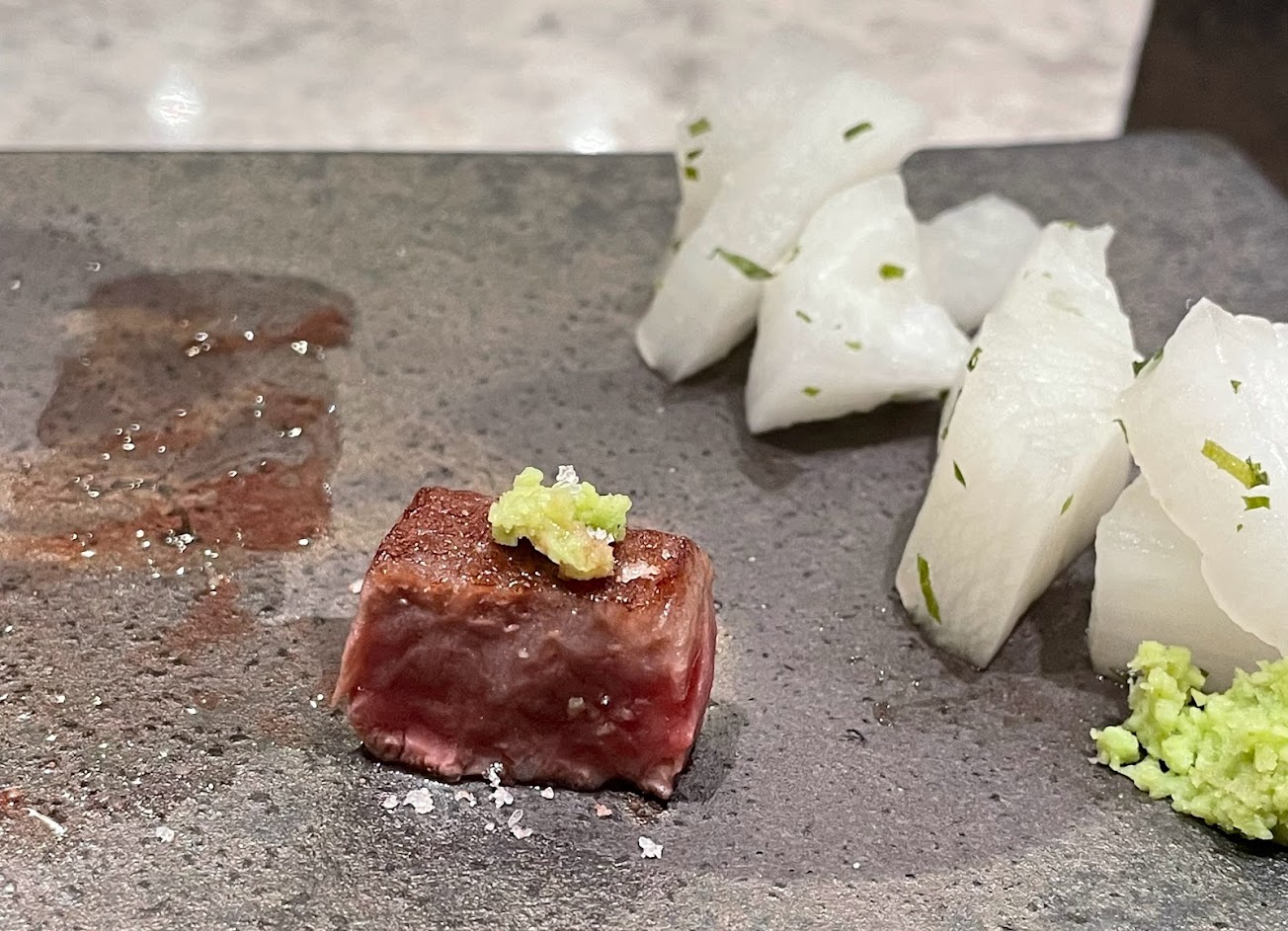 一餐吃下來覺得有點油膩,尤其是和牛牛排,咬下去完全都是油,另外廚師在分食的時候,雖然都有戴手套,但直接用手分食有點粗魯⋯⋯