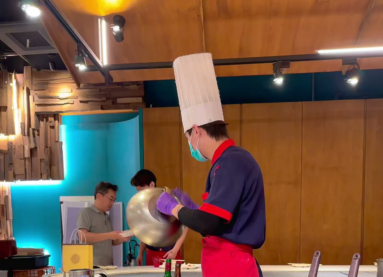 今天晚上點的是雙人精緻套餐999元,我們坐在煎臺的正前方用餐,正好看到廚師在煎一塊黑的跟什麼似的牛排,當我去詢問肉質如此之黑的牛排是不是我們的餐點時,廚師馬上主動表示說要幫我們更換一塊牛排,當下心裏是表示感謝的,時間過去了幾分鐘,廚師從廚房拿出來三塊肉讓我們挑選一塊,當我們選好一塊不那麼黑的牛排時,旁邊就跳出來一張晚娘臉的大姐,用冰冷的語氣告知,你們選這一塊肉的話,那麼餐費要變成1388元,當下,我整個傻眼了,說好的幫我們換一塊肉,就是要變相的加價?阿不然你們是有不黑的牛菲力讓我選嗎?你要莫名的加價,我當然也可以選擇不吃你的黑肉牛菲力啊,那個晚娘服務生到底是在甩什麼臭臉色啊⋯我又不欠你錢⋯真的是無言⋯難怪只有3.6顆星⋯⋯今天這一顆星是給煎臺默默無聲的廚師的⋯晚娘0顆星!!!
