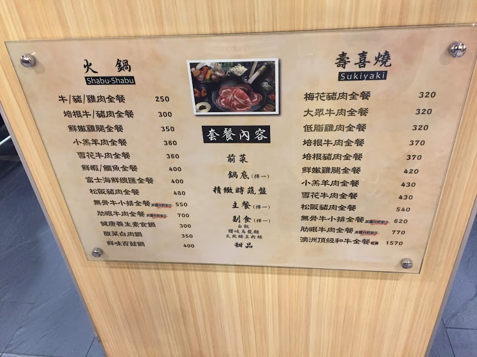 2、價格:基本豬肉、牛肉片$250其實份量還算OK,但是套餐加價$60三鮮超少。有附一碗飯跟一碗湯,但是沒有飲料稍微扣分。