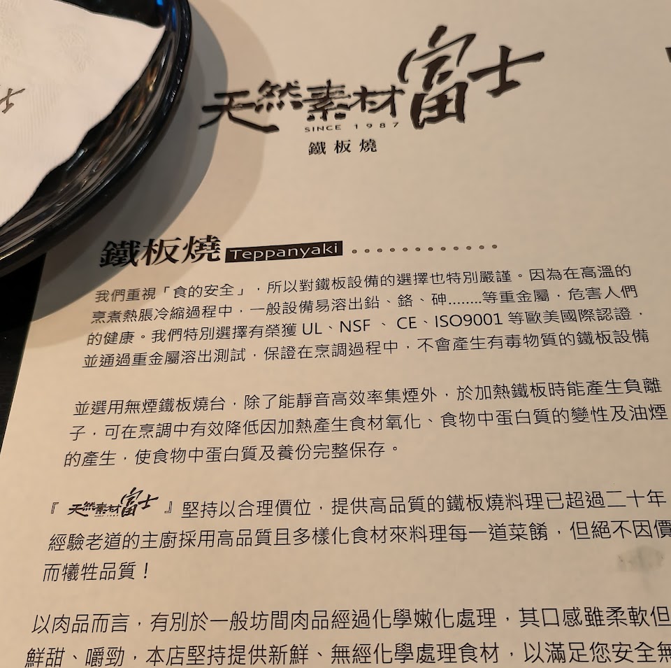 2024最新在地推薦餐廳的菜單_天然素材富士鐵板燒的菜單、圖片