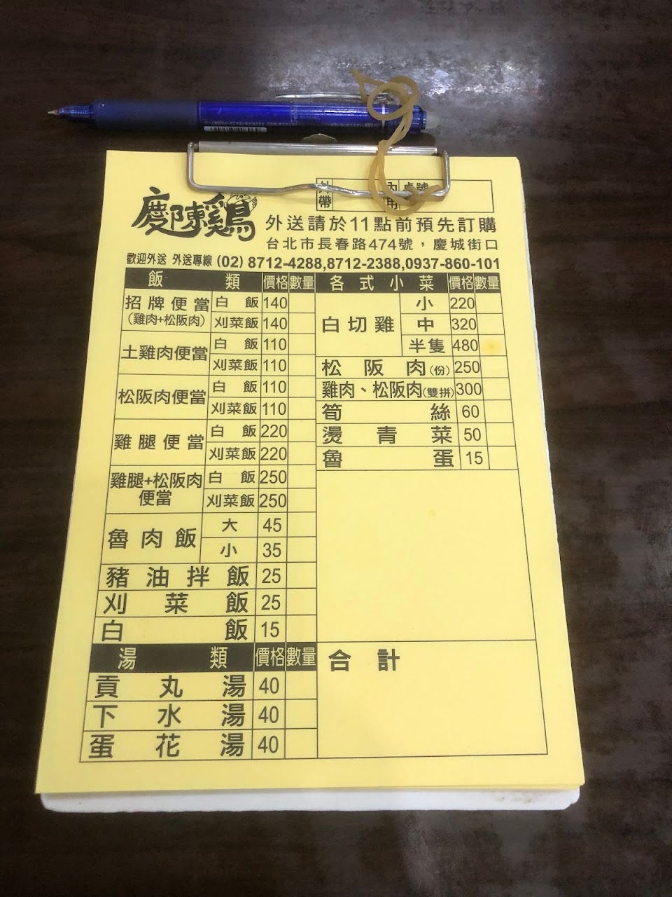 慶陳雞在長春路上,名字的關係,以為是慶城海南雞飯,結果是台式土雞。中午11點造訪客人數不多,但是看店員人數跟外賣的訂單,可以知道,生意很好。