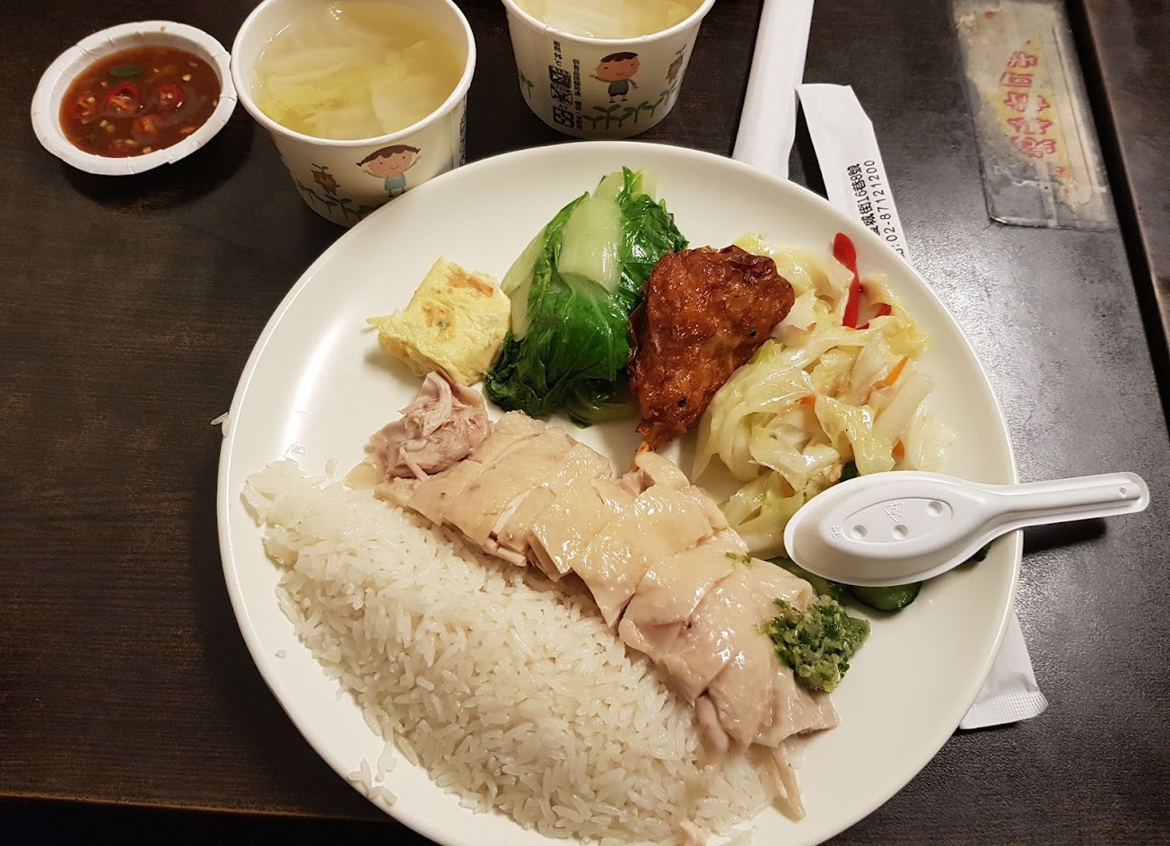 海南雞很嫩 口味也不錯 油蔥是有加薑末的那種 好吃推薦 可是配菜很油 不知道是不是我拿到的剛好比較油 同行朋友說他的沒有這麼油? cp值普普通通 以價格來說量好像有點少 雞肉跟飯的量都不多 店內有提供湯 可以自行取用 湯很好喝 推薦! 用餐完後需自己收垃圾和餐盤 座位算多 還算乾淨 不到餐廳的乾淨程度但還能接受 店內也有開冷氣不會悶熱 雖然生意很好 點餐隊伍很長 但是前進速度很快!備餐速度也很快!不需要等太久 – 1號餐 $90 飯+海南雞 沒有配菜 2號餐 $115元 飯+海南雞 有配菜