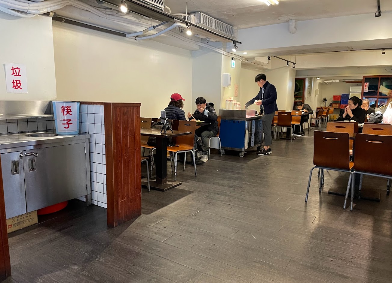店內的環境不算太明亮 偶爾可能要等位子 還有免費的湯 餐具也都需要自取